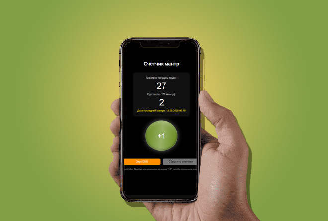 Этот инструмент поможет вам вести учёт повторений мантр в режиме реального времени. Счётчик поддерживает традиционную структуру — 108 мантр в круге, а также позволяет отслеживать общее количество прочитанных мантр и дату последней практики.